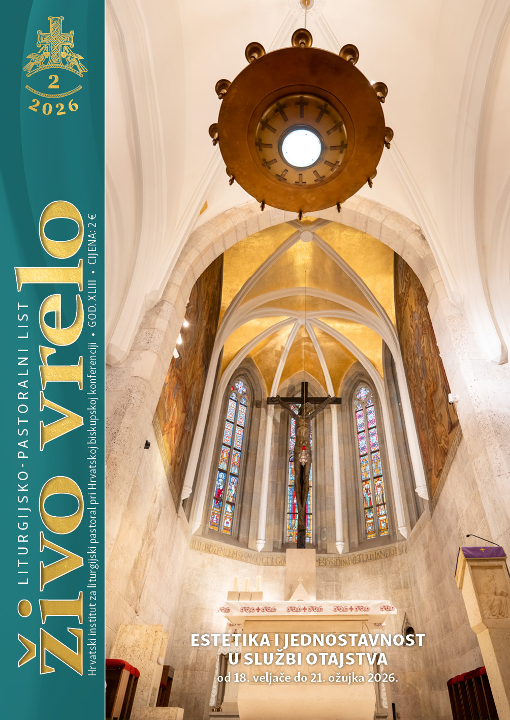 Liturgija dana Ponedjeljak, 16. 2. 2026Ponedjeljak, 16. 2. 2026 Estetika i jednostavnost u službi otajstvaod 18. veljače do 21. ožujka 2026. Živo vrelo 2-2026 Sjedenje i stajanje u liturgijiod 18. siječnja do 21. veljače 2026. Živo vrelo 1-2026 Iz živoga vrela Aktualno, Otajstvo i zbilja Pepelnica Aktualno, Otajstvo i zbilja Prva korizmena nedjelja Aktualno, Otajstvo i zbilja Druga korizmena nedjelja Aktualno, Otajstvo i zbilja Treća korizmena nedjelja Aktualno, Otajstvo i zbilja Četvrta korizmena nedjelja Mario Kopjar Aktualno, Naša tema Ljepota otajstva. Estetika kao oblik svetoga u liturgijskom slavlju Zlatko Vlahek Aktualno, Naša tema Plemenita jednostavnost kao temelj liturgijskoga izričaja Milan Dančuo Aktualno, Naša tema Estetika i djelatno udioništvo: ruho i predmeti u liturgijskom slavlju Naša izdanja Mensa Verbi Prepoznati Uskrsloga Mensa Verbi Jedan je vaš učitelj Mensa Verbi Povede ih na goru Mensa Verbi Obasja ih svjetlom Mensa Verbi Siđoše s gore Mensa Verbi Homilijar vlastitih slavlja Zagrebačke nadbiskupije Culmen et fons Na vrelu liturgije Culmen et fons Plemenita jednostavnost Prilozi Pred liturgijskim slavljem Prilozi Dođi kraljevstvo tvoje Smjerokazi Prijenos liturgijskih slavlja Odjeci Vrtlog grijeha Ostala izdanja Zbirke homilija za liturgijske godine A, B i C Ostala izdanja ŽIVO VRELO – uvez Ostala izdanja Liturgijski kalendar Božanski časoslov Božanski časoslov Ostala izdanja Akatist svetomu i pravednomu Josipu Ostala izdanja Ispit savjesti